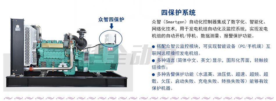 ● 多種告警保護功能(水溫高、油壓低、超速、超頻、超載、欠壓、啟動失敗、充電失敗、轉換失敗等)能夠有效保護機器。
