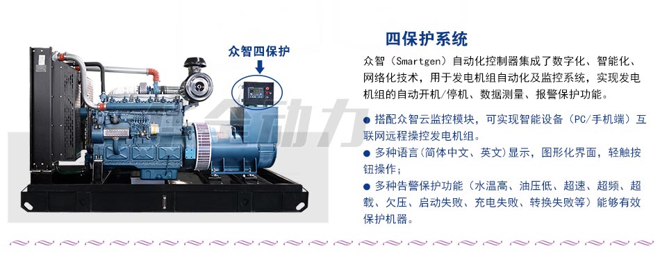 ● 多種告警保護功能(水溫高、油壓低、超速、超頻、超載、欠壓、啟動失敗、充電失敗、轉換失敗等)能夠有效保護機器。